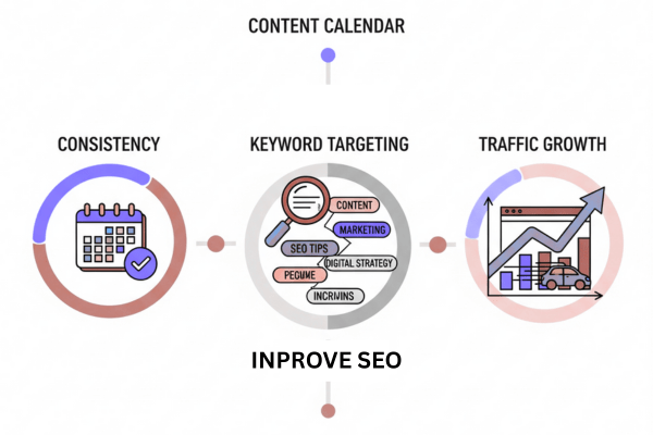Ans: A content calendar for SEO is essentially a step-by-step plan for your content creation, which enables you to plan and manage your content in an organized manner. You do not have to content just anyhow, instead, you can plan topics, keywords, and publishing dates ahead. This guarantees that besides being consistent with your audience, you are also giving Google a content that contains valuable keywords, which it in return will use to rank your website higher.
