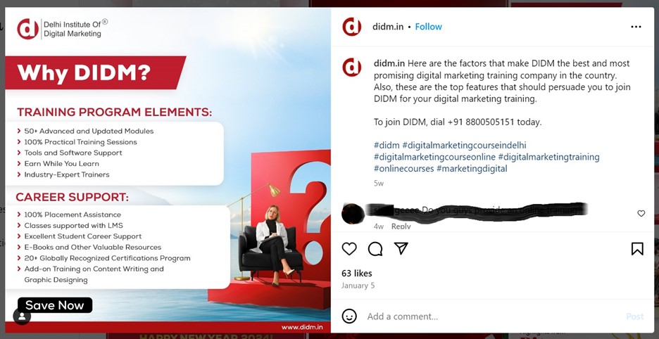 If you want to learn Instagram strategy for your brand or business, you can learn with the top marketing experts at DIDM. Delhi Institute of Digital Marketing is a top digital marketing institute in Delhi to provides the best learning courses for digital marketing niches. You can have your customized courses as well with us.